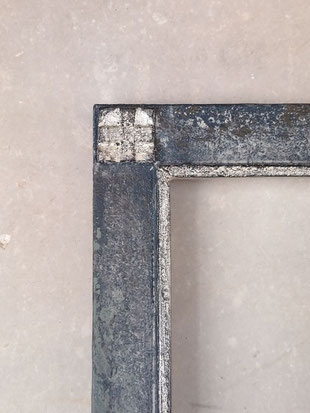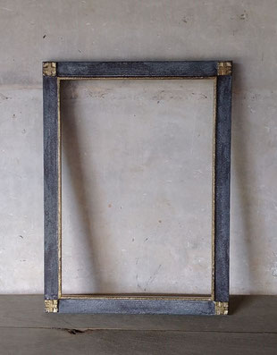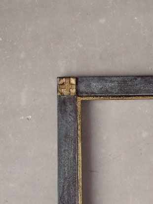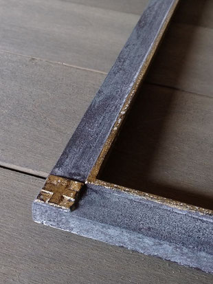 The corner reliefs and inner lines are finished with brass leaf and silver leaf.