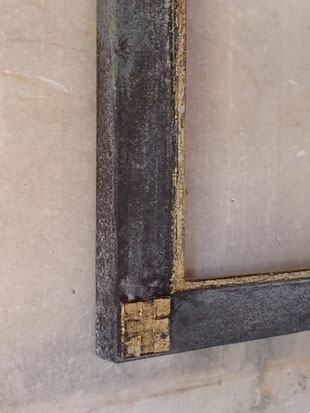 コーナーのレリーフ、内側のラインは洋金箔と本銀箔で仕上げています。